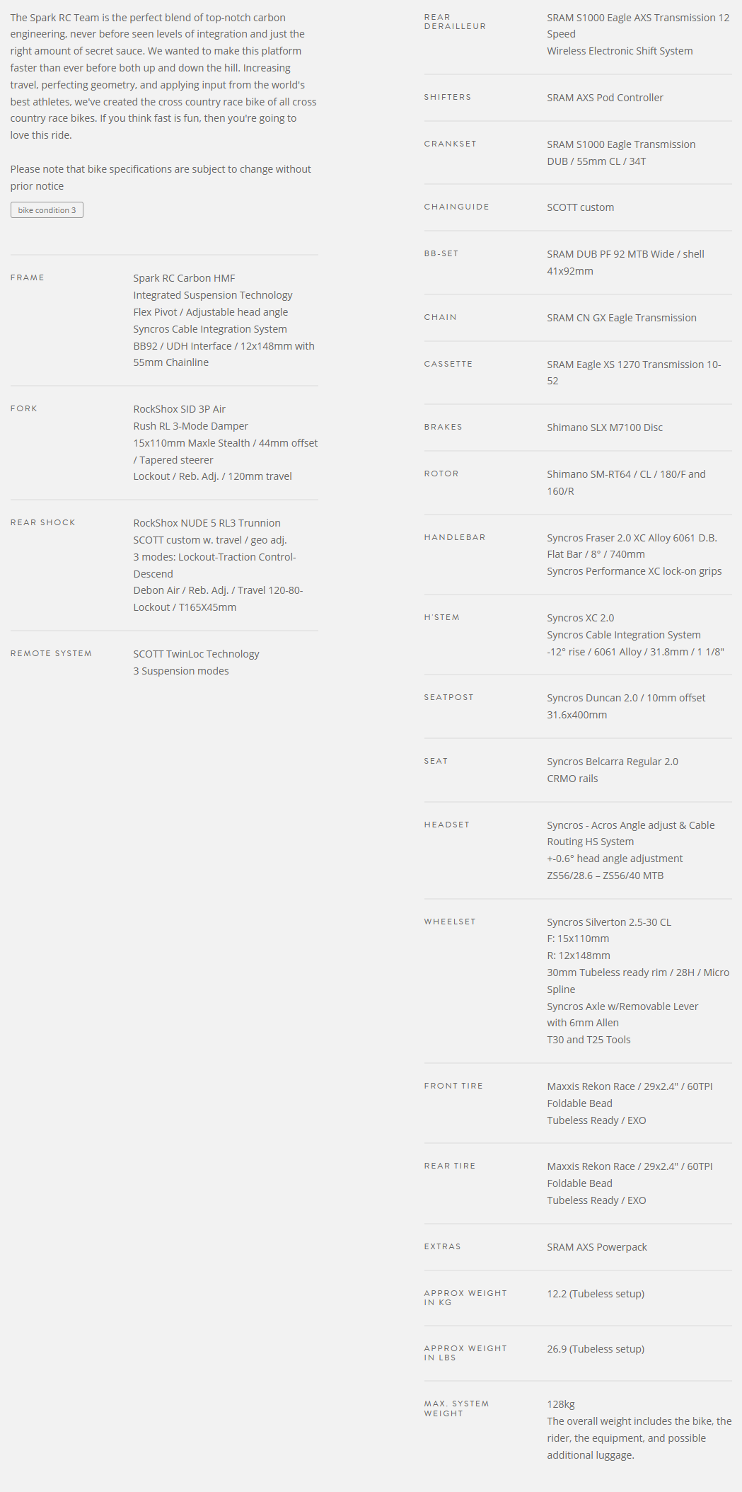 全新SPARK RC可選購Syncros Fraser iC Combo一體式把手成就了整合式內藏走線系統,避免管線扭曲糾結,提供了車身前方極簡的視覺感,並能完美地與我們的專利TwinLoc避震遙控系統整合,對應現今越來越技術化的賽道,我們造就了世上最有競賽能力的XC武器。