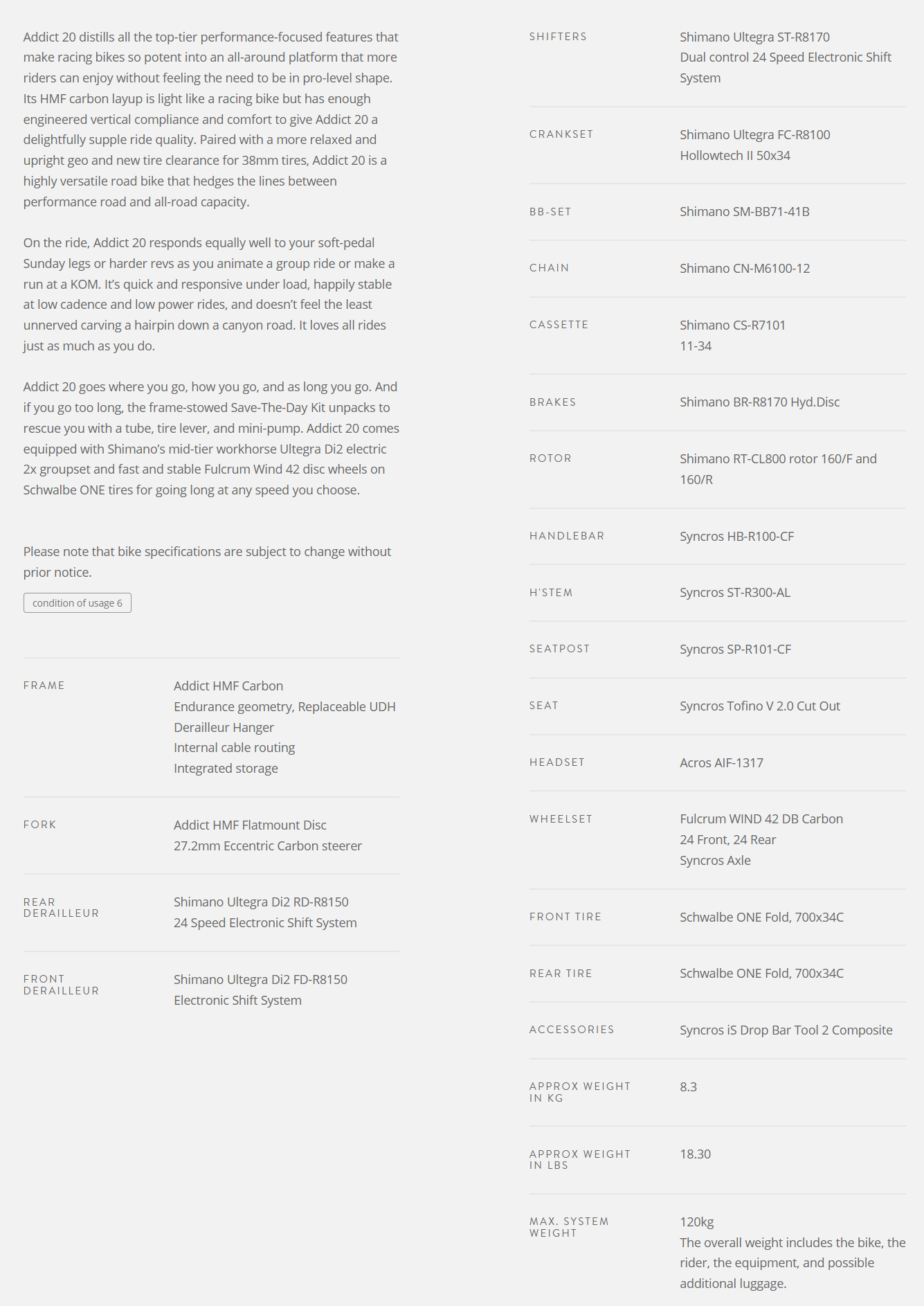 承襲高階競賽車系的精髓,將輕量化、敏捷操控與長途舒適性完美融合,無論是輕鬆的周末團騎或 KOM 衝刺,Addict 20 都能忠實回應每一次踩踏的節奏。它穩定、安全、靈活,是一台從城市到鄉野皆能馳騁的「多用型公路車」。